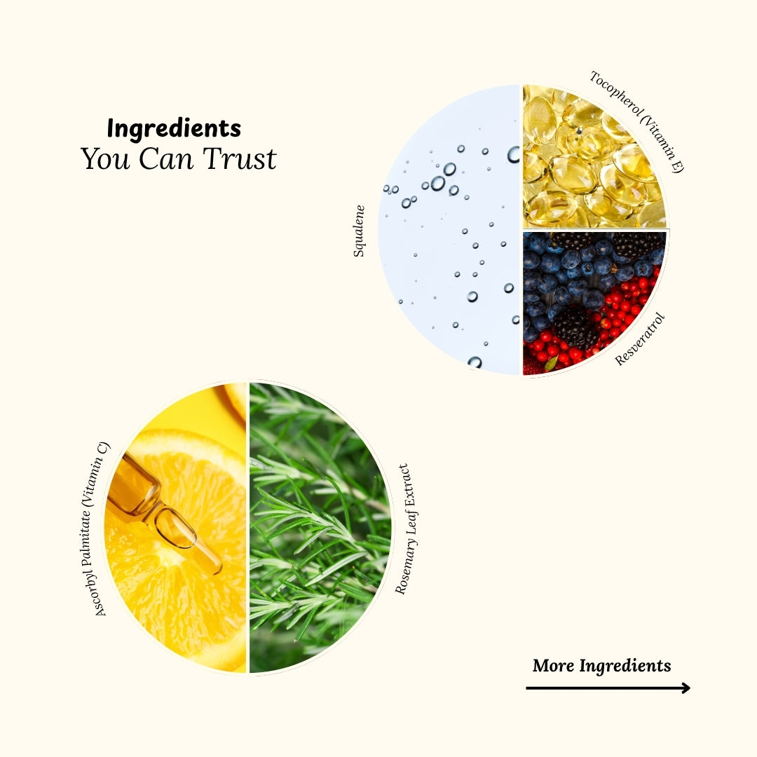 - Squalene, Resveratrol, Rosemary Leaf Extract