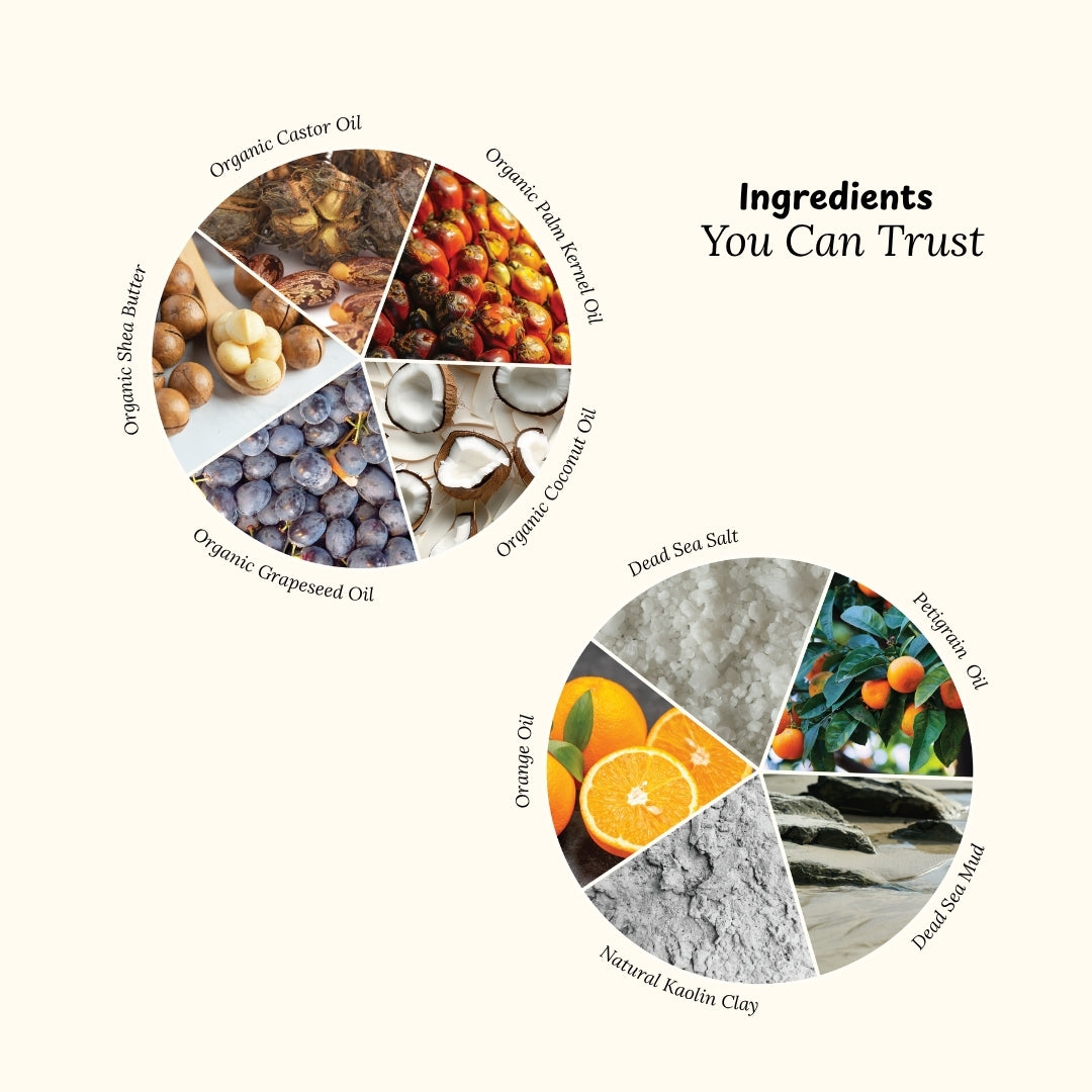 - Organic Essential Oils of Orange & Petigrain (orange essential oil soap)